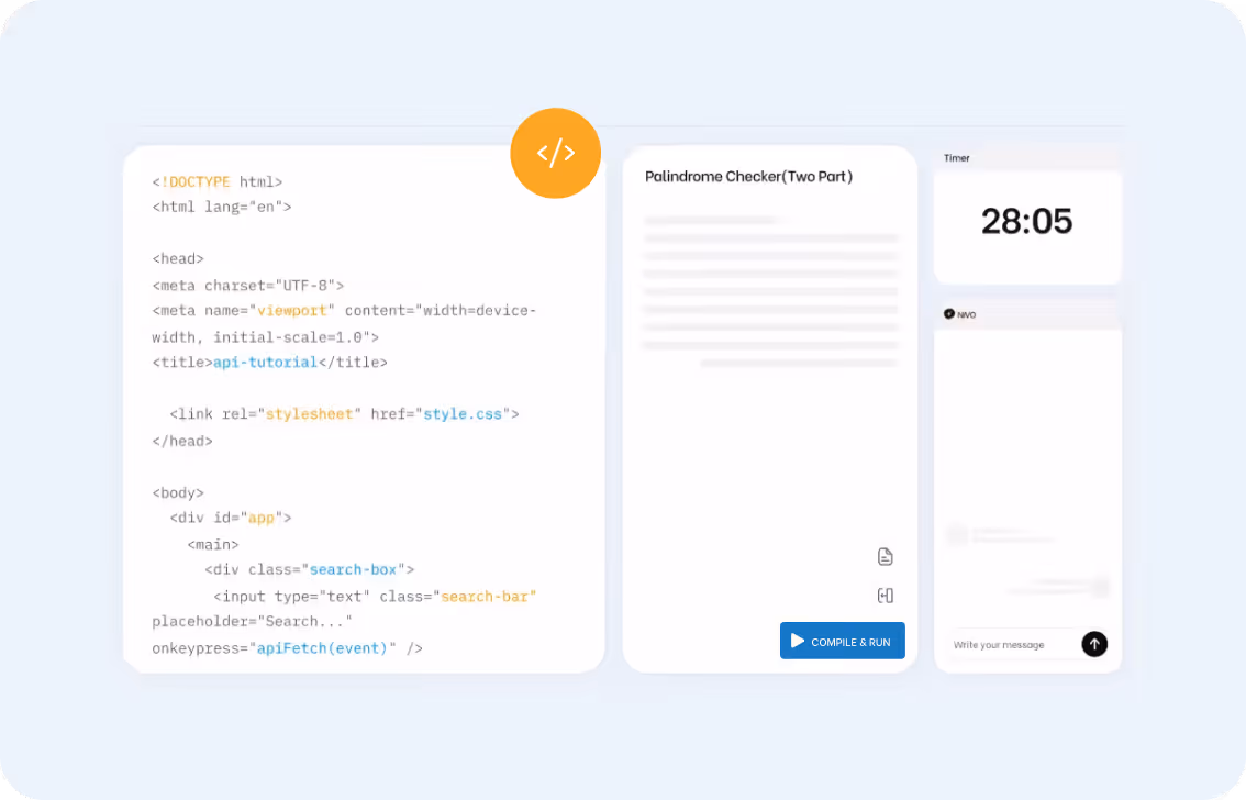 Most Coding Interviews only grade output. Our AI evaluates how candidates think, communicate, and problem-solve in a live technical conversation — revealing strengths and gaps that static challenges can’t detect.