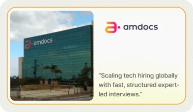 Amdocs conducted 7,607 interviews and filled 872 positions using FloCareer’s Interview-as-a-Service—achieving 63% next-round conversion in 22 hours TAT.